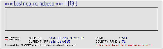 User description is absent. If you are the owner of this server, you can get access to the statistics and description edit. Click "This is my server" link which is shown in the table above. If there is no link it means that you have not registered in our system or forgot to login.