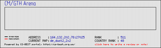 User description is absent. If you are the owner of this server, you can get access to the statistics and description edit. Click "This is my server" link which is shown in the table above. If there is no link it means that you have not registered in our system or forgot to login.