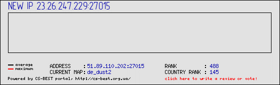 User description is absent. If you are the owner of this server, you can get access to the statistics and description edit. Click "This is my server" link which is shown in the table above. If there is no link it means that you have not registered in our system or forgot to login.