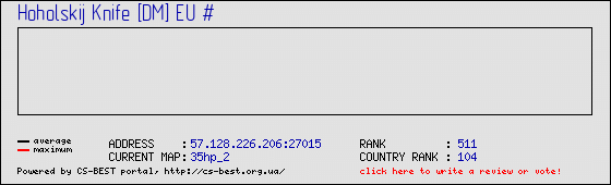 User description is absent. If you are the owner of this server, you can get access to the statistics and description edit. Click "This is my server" link which is shown in the table above. If there is no link it means that you have not registered in our system or forgot to login.