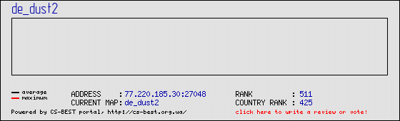 User description is absent. If you are the owner of this server, you can get access to the statistics and description edit. Click "This is my server" link which is shown in the table above. If there is no link it means that you have not registered in our system or forgot to login.